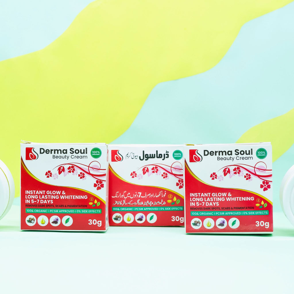 Dermasoul Beauty Cream is your all-in-one organic skincare solution, carefully formulated in Pakistan with 0% side effects and PCSIR approval. Designed as a powerful night cream, it targets dark spots, pigmentation, acne scars, and uneven skin tone – delivering visible results in just 5–7 days, guaranteed or your money back!